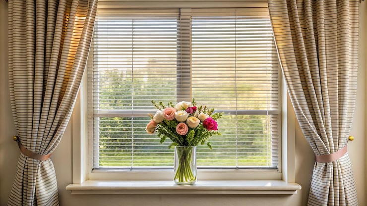 • For a Layered Look: Add elegance and softness with Custom-Made Curtains or sheer drapes. This combination allows for flexible light filtering and adds a softness that balances the structured look of blinds.